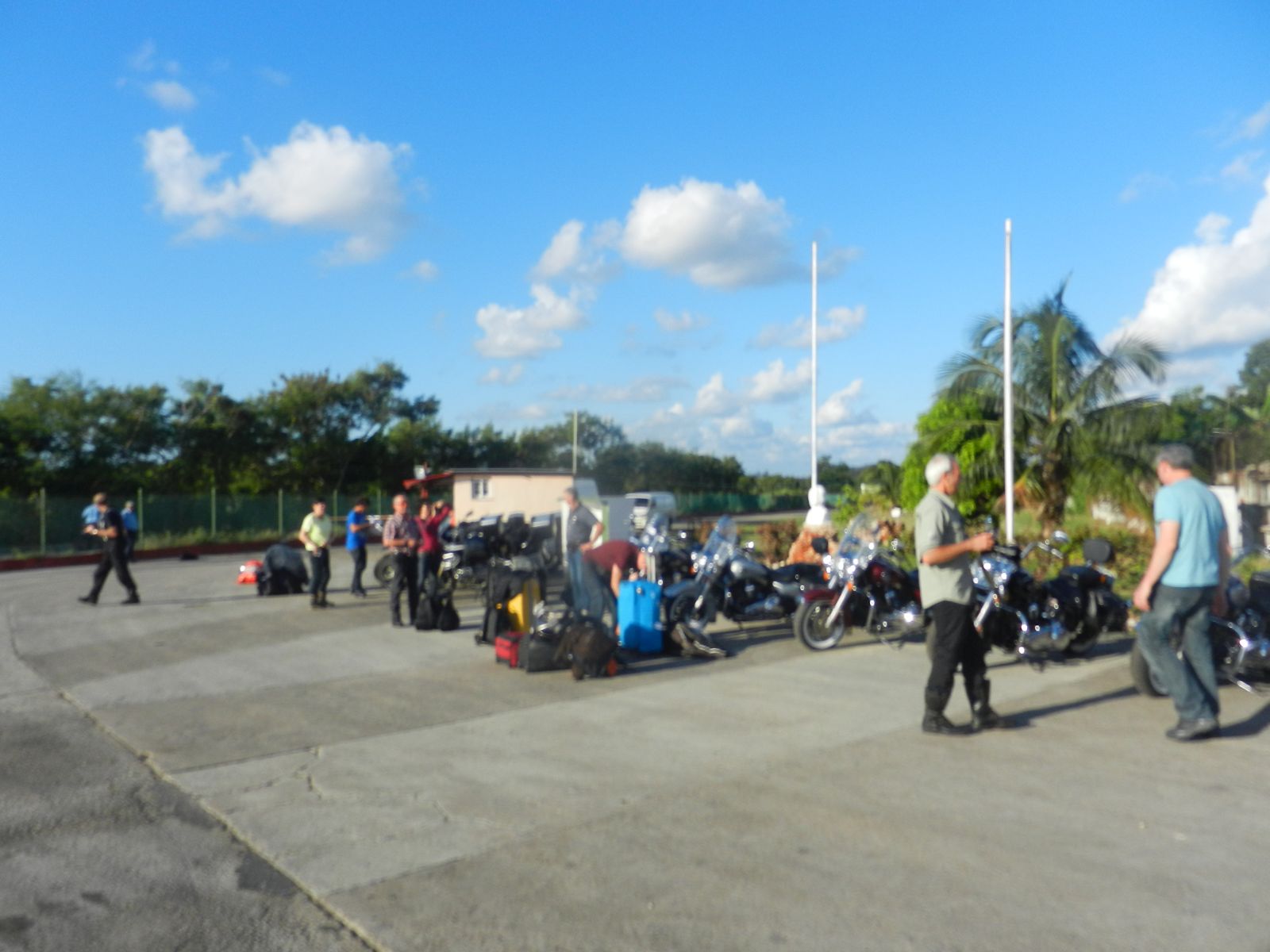 Heute Morgen waren alle pünktlich und zum Teil recht aufgeregt beim Frühstück, denn schon bald holte uns der Bus, der uns zur Vermietstation brachte, ab. Bei dem Vermieter angekommen schauten wir uns nach unseren reservierten Maschinen um und im einen oder andern Gesicht war eine kleine Enttäuschung zu lesen, denn es standen keine Street-Glides da. Wir mussten also mit unserer 'zweiten Wahl', einer Road-King, vorlieb nehmen.