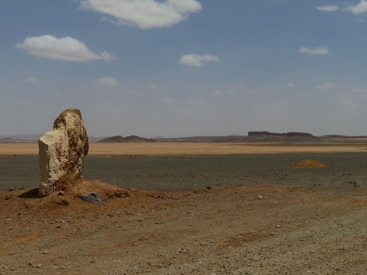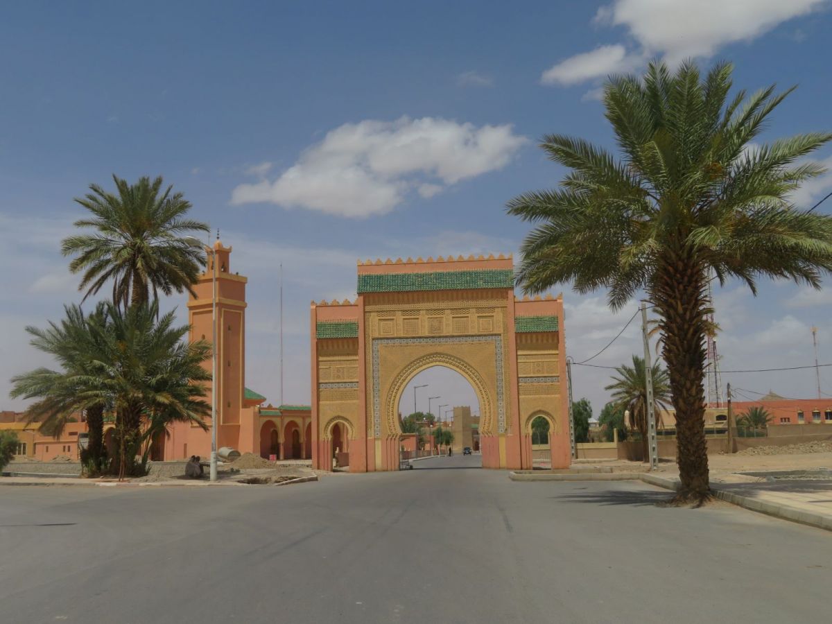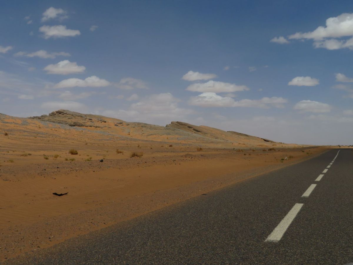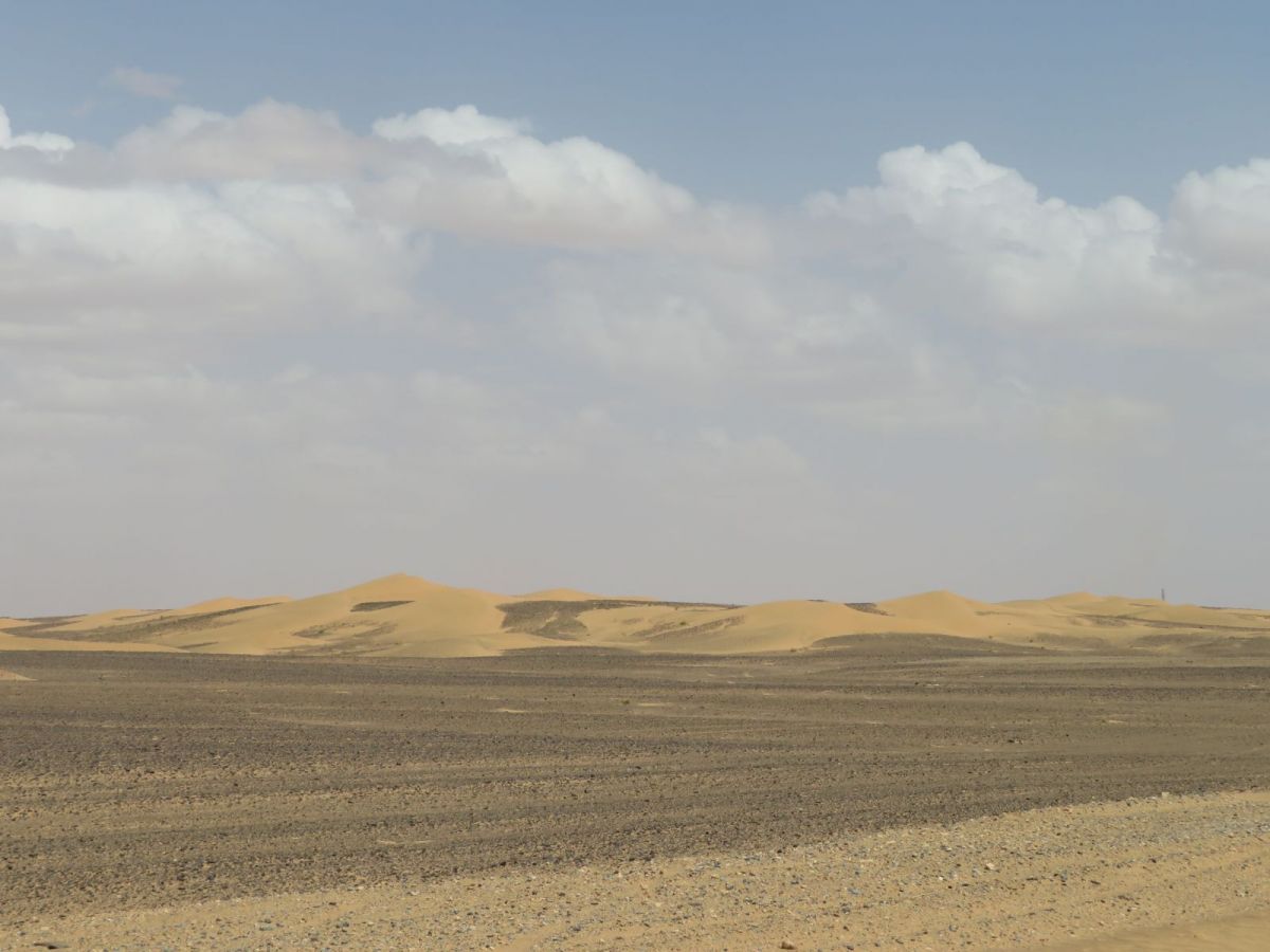 Nach dem Besuch der Schlucht fuhren wir weiter wieder in die WEüste hinein zu unserem nächsten Tagesziel, den Erg Chebbi Sanddünen bei Merzouga. Schon von weitem begrüssten uns die Dünen und wir fuhren zuerst direkt nach Merzouga. Hier war es Dank des Ramadan wie ausgestorben, nur ein paar 'faux guides' wollten uns Kamel- und andere Touren in die Dünen aufschwatzen.