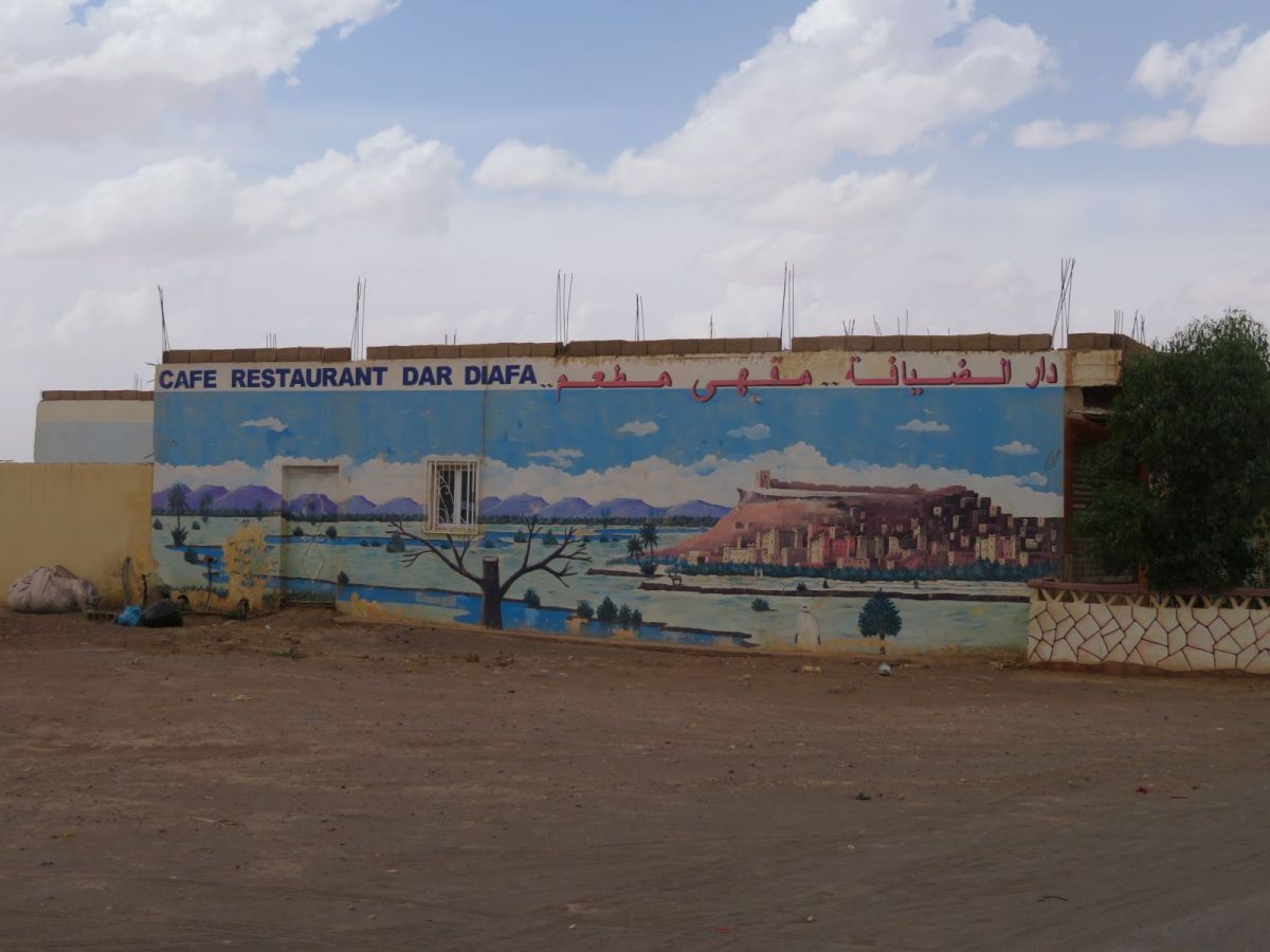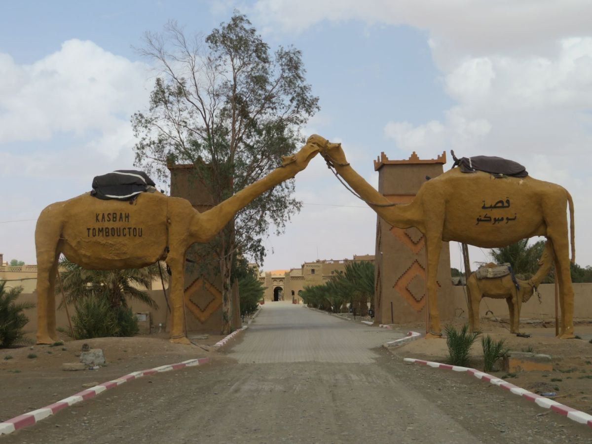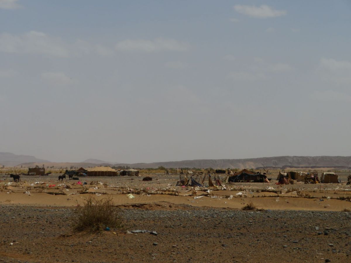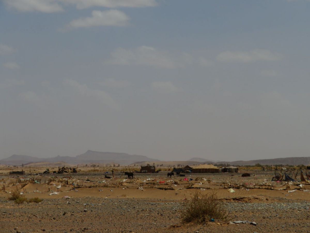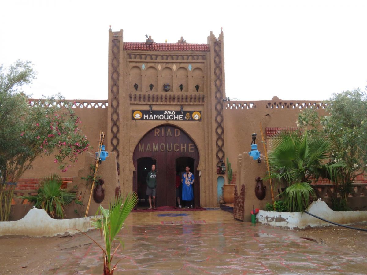 Das Riad Mamouche liegt am Rande dieser Siedlung direkt vor der grossen Düne, wo die Kamele auf Kundschaft warten. In dieser Siedlung machten sich einmal mehr die andere Seite des Ramadan bemerkbar, denn es gab ausserhalb des Riads nichts zu Essen oder Trinken. Auch im Riad selber war es recht schwierig ausserhalb gewisser Zeiten etwas zum Trinken zu erhalten. Schlussendlich erhielten wir aber doch noch unsere Verpflegung.