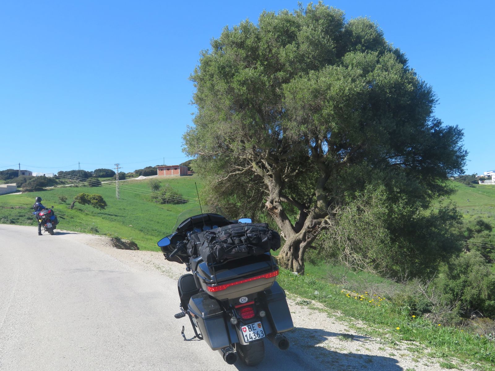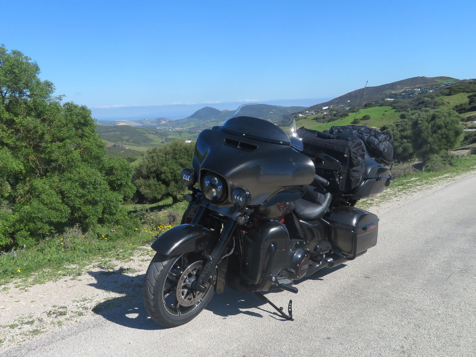 Da die Nacht doch recht kurz war und wir was von Chefchauen sehen wollten entschlossen wir uns zu der kürzeren Route. Diese führte uns erstmals auf einer Nebenstrasse durch die Hügel nach Tetouan. Hier erreichten wir das Mittelmeer wo die neu gebaute Küstenstrasse zu zügigem Kurvenfahren einlud.
