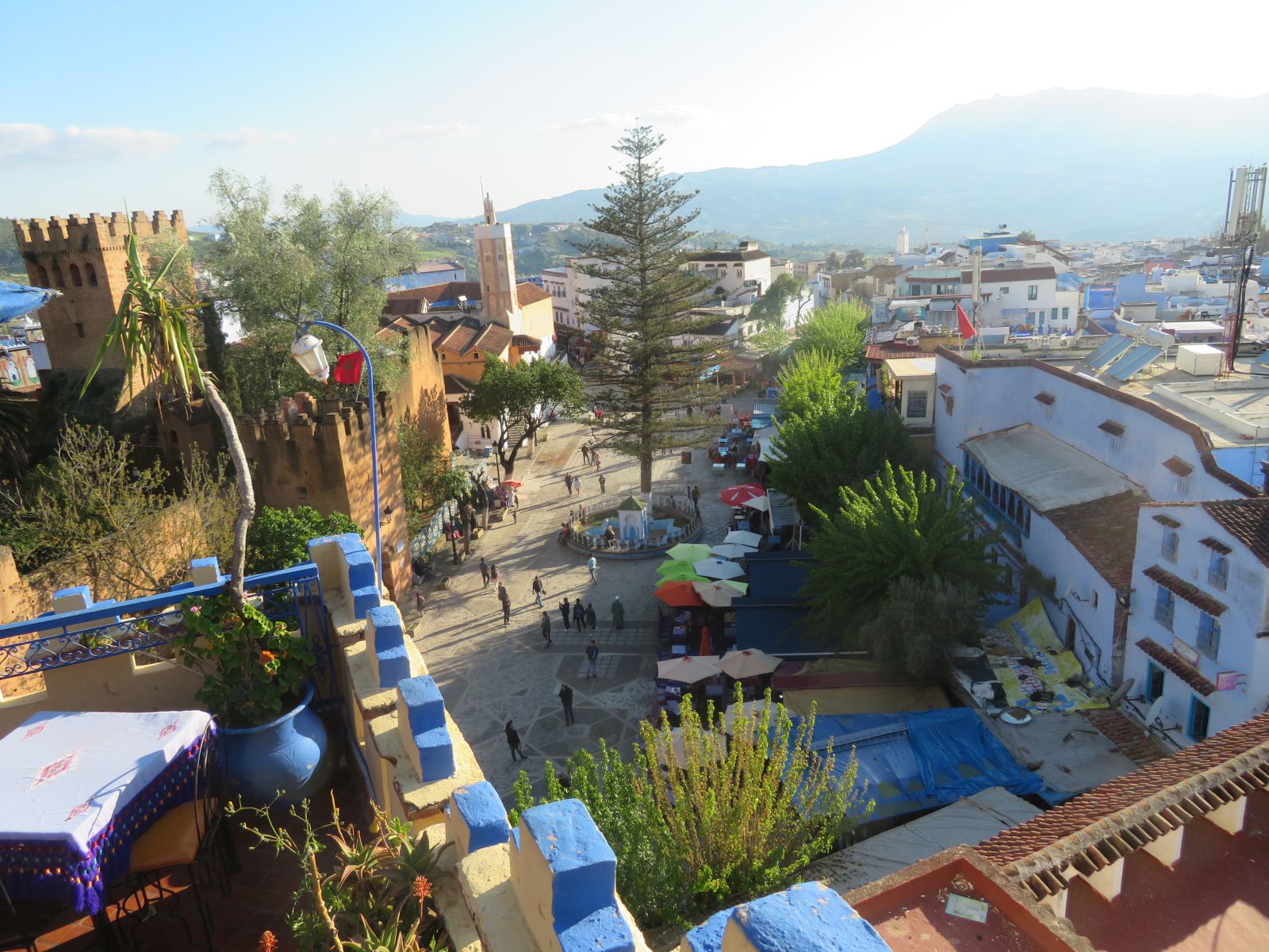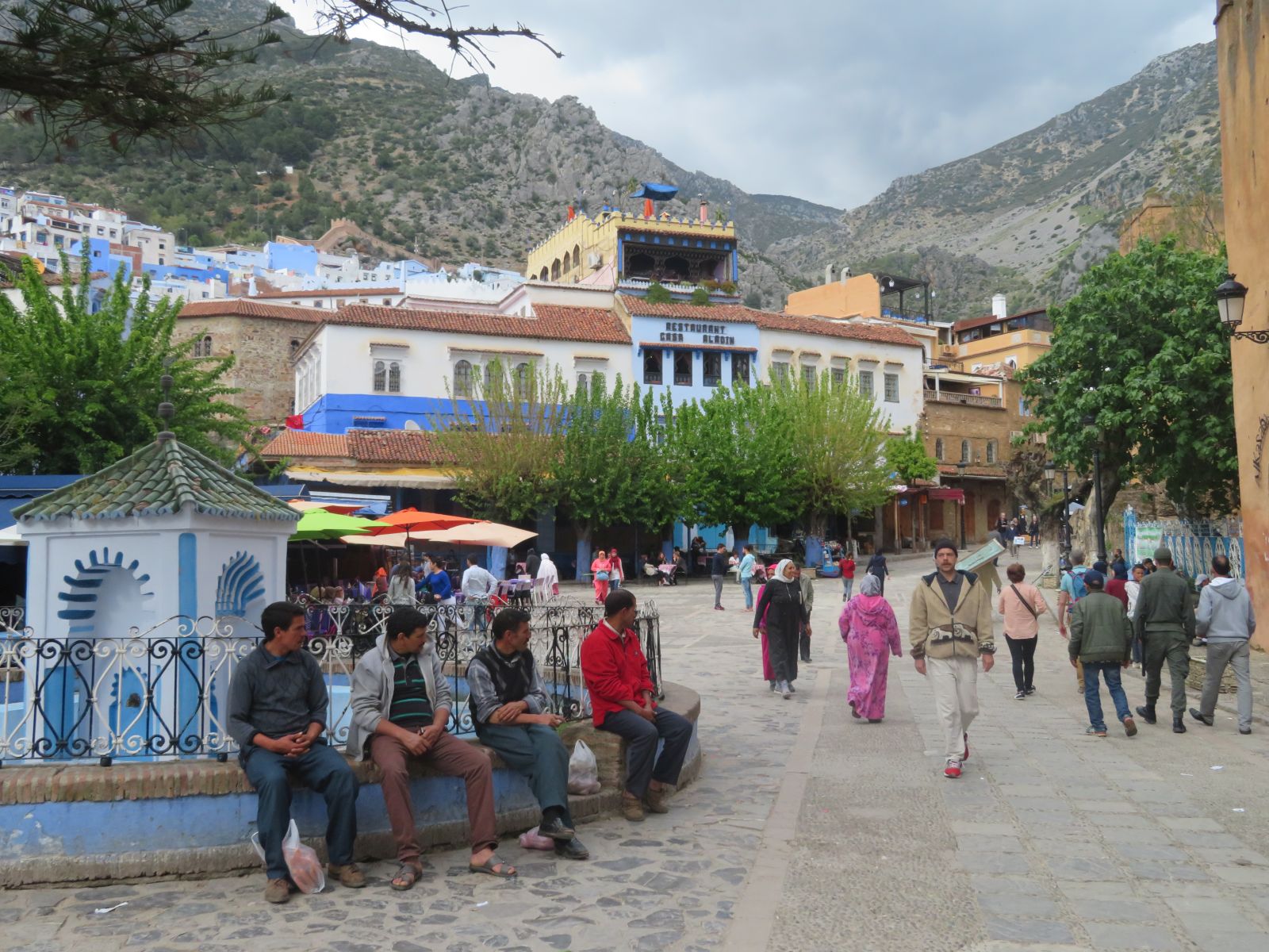 Schon bald erreichten wir Qued Laou, hier bogen wir ins Riffgebirge ab und am frühen Nachmittag kamen wir in Chefchauen an. Unsere Unterkunft, der Parador von Chefchauen, liegt optimal gelegen im Zentrum nahe des Marktplatzes. Nach dem Zimmerbezug schlenderten wir durch die Gassen und das Nachtessen genossen wir auf einer hoch über dem Platz gelegenen Terrasse des Restaurants ‘Casa Aladin’.