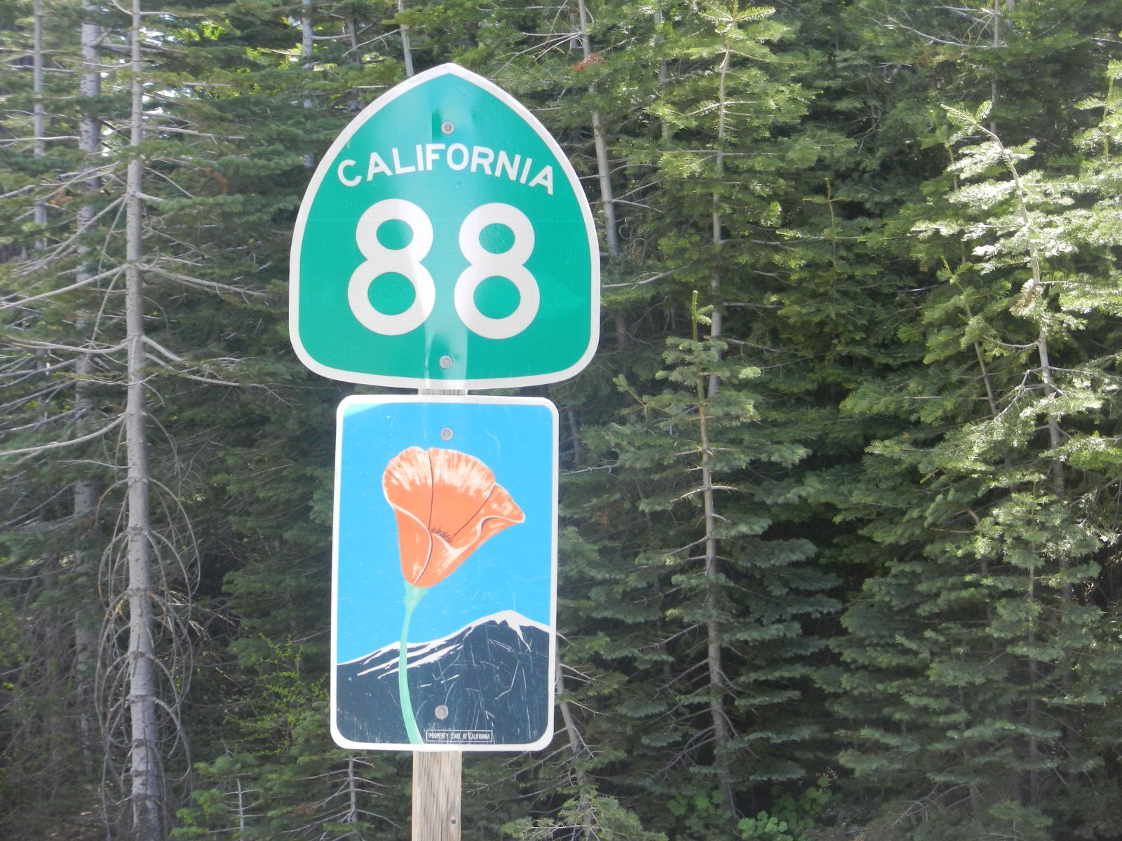 In Jackson begann der erste befahrbare Pass über die Sierra Nevada, der Carson Pass. Die Strasse führte in schönen lang gezogenen Kurven stetig bergauf bis zu ‘Cooks Station’ wo ich einen Kaffeehalt machte.